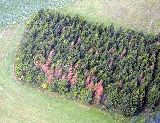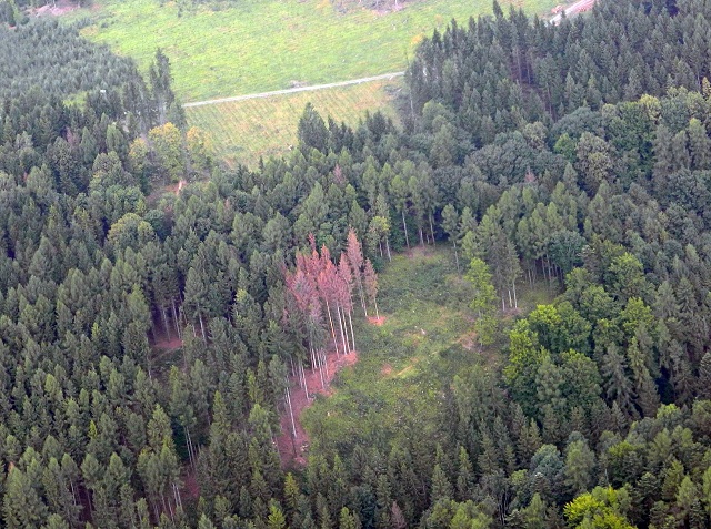V západní části republiky lze „kůrovcovou“ situaci ve smrkových porostech označit jako celkově stabilizovanou, s výjimkou území NP Šumava (zde byl sice vedením parku rovněž proklamován „zánik kalamity“, stále se zde však nalézá velké množství aktivních kůrovcových stromů, zejména v severozápadní části území, a nebezpečí „nové vlny“ přemnožení je zde značné, především s ohledem na pokračující sucho a jeho následky). Ve východní polovině je stav jiný. V prostoru nižších a středních poloh střední a severní Moravy a Slezska panuje nepříznivá situace, kterou lze ve srovnání s roky minulými (zejména roky 2010 a 2011) označit jako výrazné zhoršení. Vyskytují se zde i rozsáhlejší kůrovcová ohniska, přičemž jako původci napadení vystupují všechny hlavní druhy kůrovců, tedy lýkožrout smrkový, l. severský, l. lesklý a lokálně i l. menší.