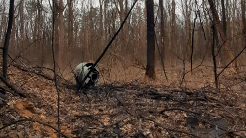 Následky ostřelování v lesním revíru Konotop (Sumská oblast).