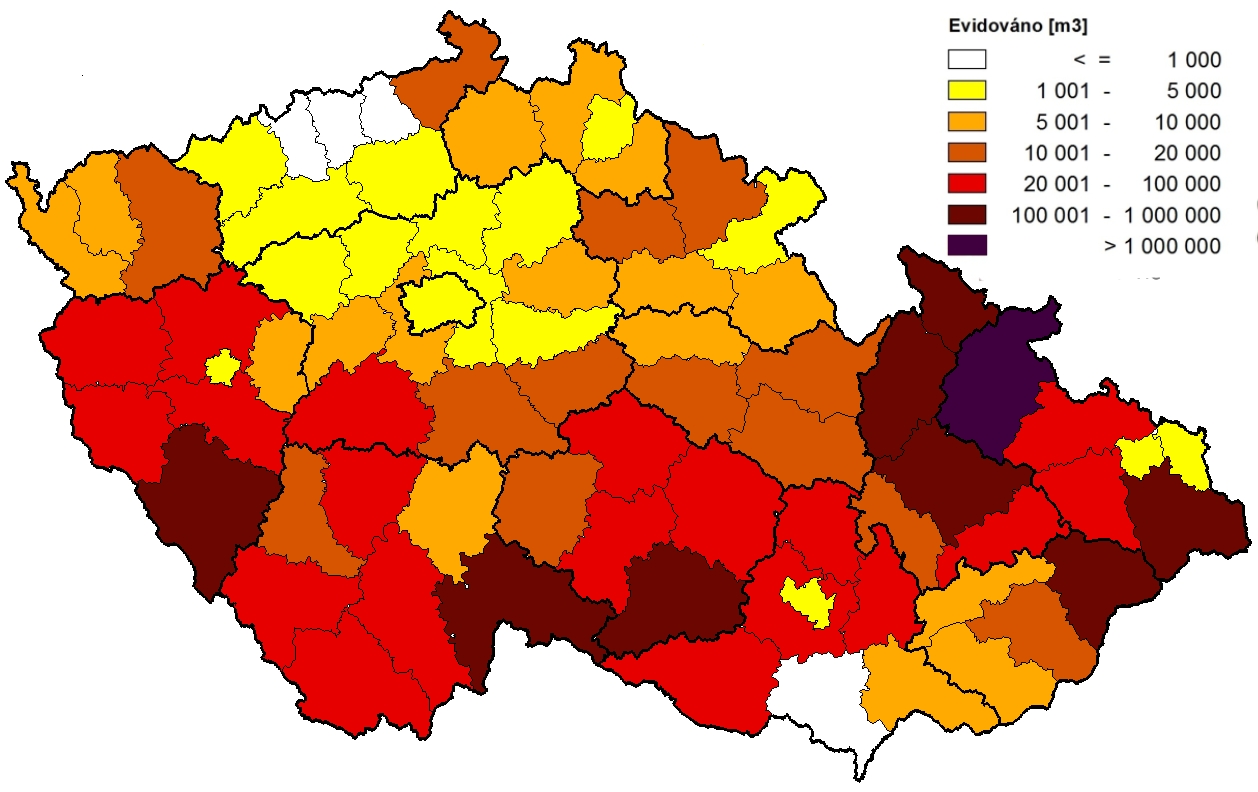 Přiložená mapka vypovídá jednak o okrscích, kde vysoké zastoupení listnáčů lýkožroutům na smrku nepodlehne (dolní toky Labe a Moravy).