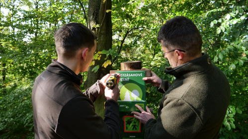 Na bezzásahové území upozorňuje návštěvníky lesa cedulka. Foto: Lesy ČR