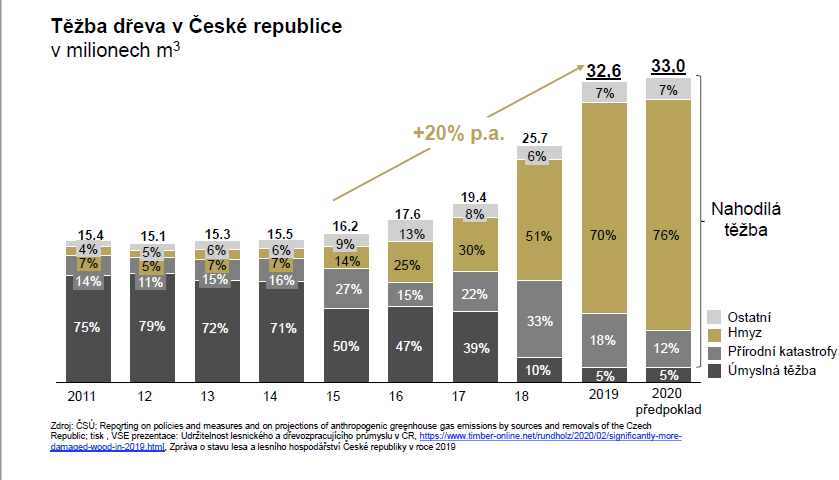 Meziroční navýšení nahodilé jehličnaté těžby mezi lety 2019 a 2020 u respondentů interního šetření SVOL dosáhlo 9 %. „Na základě reálných dat respondentů tohoto průzkumu a našich propočtů by příspěvek na zmírnění dopadů kůrovcové kalamity za rok 2020 u nestátních vlastníků lesa odpovídal částce 779 Kč/m3 a předpoklad skutečné finanční potřeby 11,4 mld.," řekl expert SVOL na finanční otázky související s hospodařením v lesích a správce Kolowratského majetku Martin Fojt na online tiskové konferenci SVOL 16. 2. 2021.