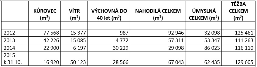 Těžby v zásahových oblastech Správy NP Šumava od roku 2012
