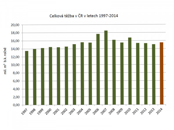 Podíl nahodilé těžby z celkové byl 29 procent, což je zhruba předloňská úroveň. Lesníci se museli například loni v květnu vypořádat na severu Moravy s polámanými a popadanými stromy po silném větru, který v nárazech dosahoval síly orkánu. Vítr tehdy poničil jen státnímu podniku Lesy ČR zhruba 250 000 metrů krychlových dřeva. Významný podíl na výši nahodilých těžeb má chřadnutí porostů na střední a severní Moravě.