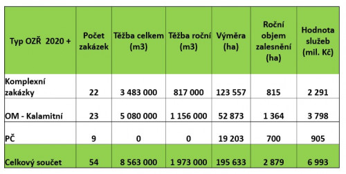 Rozdělení dle typu zakázky a předpokládaného objemu ročních těžeb. Zdroj: Lesy ČR