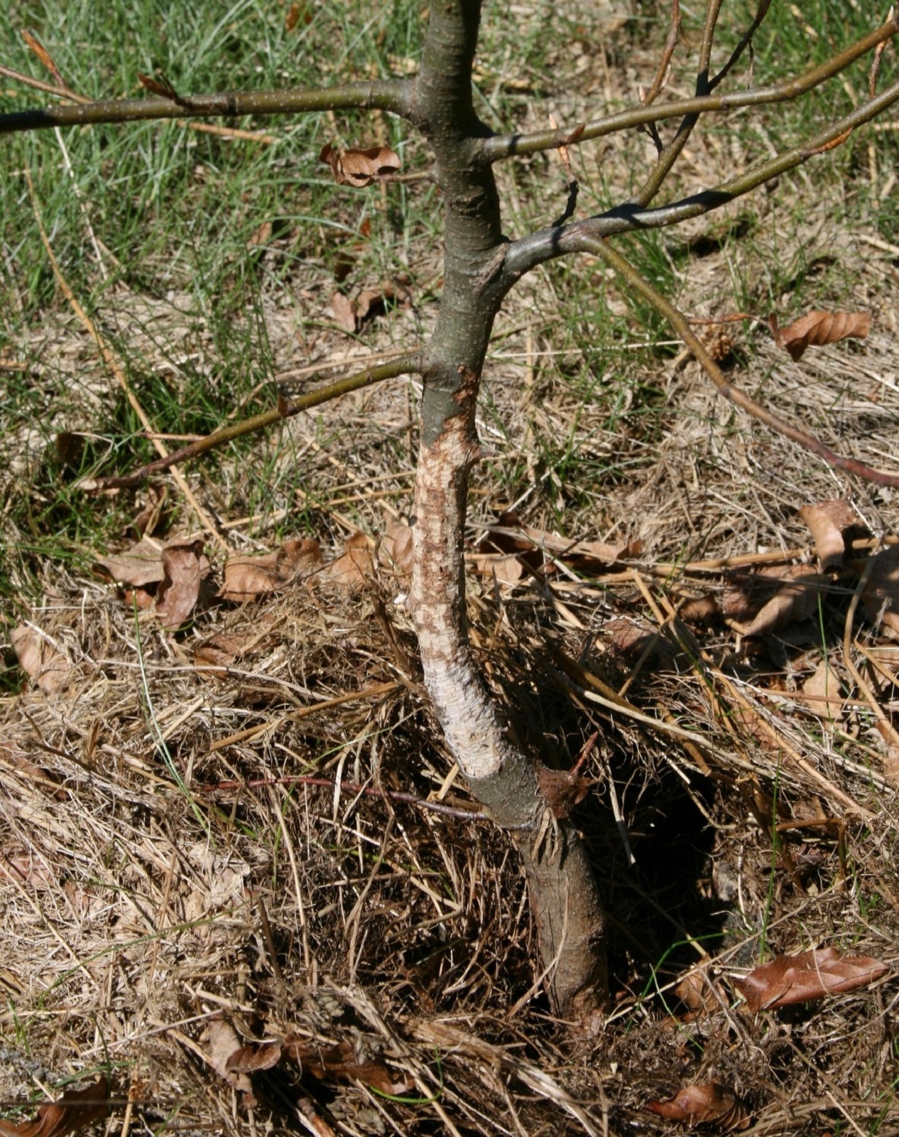 Ohryz buku lesního hrabošem mokřadním pod sněhem, foto: Josef Suchomel