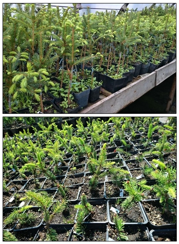 Vegetativní sadební materiál byl vypěstován v dostatečném množství ve školkařském zařízení PEXÍDR, s. r. o. v Protivíně. Na tomto pracovišti probíhá také, v rámci poloprovozního výzkumu, pěstování tzv. sekundárních řízkovanců klonů krušnohorského smrku, které budou využity pro doplnění dříve založených experimentálních výsadeb v Krušných horách a pro jejich další hodnocení.