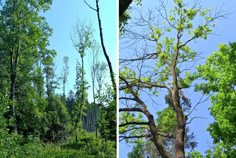 Nekrózou napadené jasany ztepilé (Lomnicko a Příbramsko, 2023), archiv VULHM