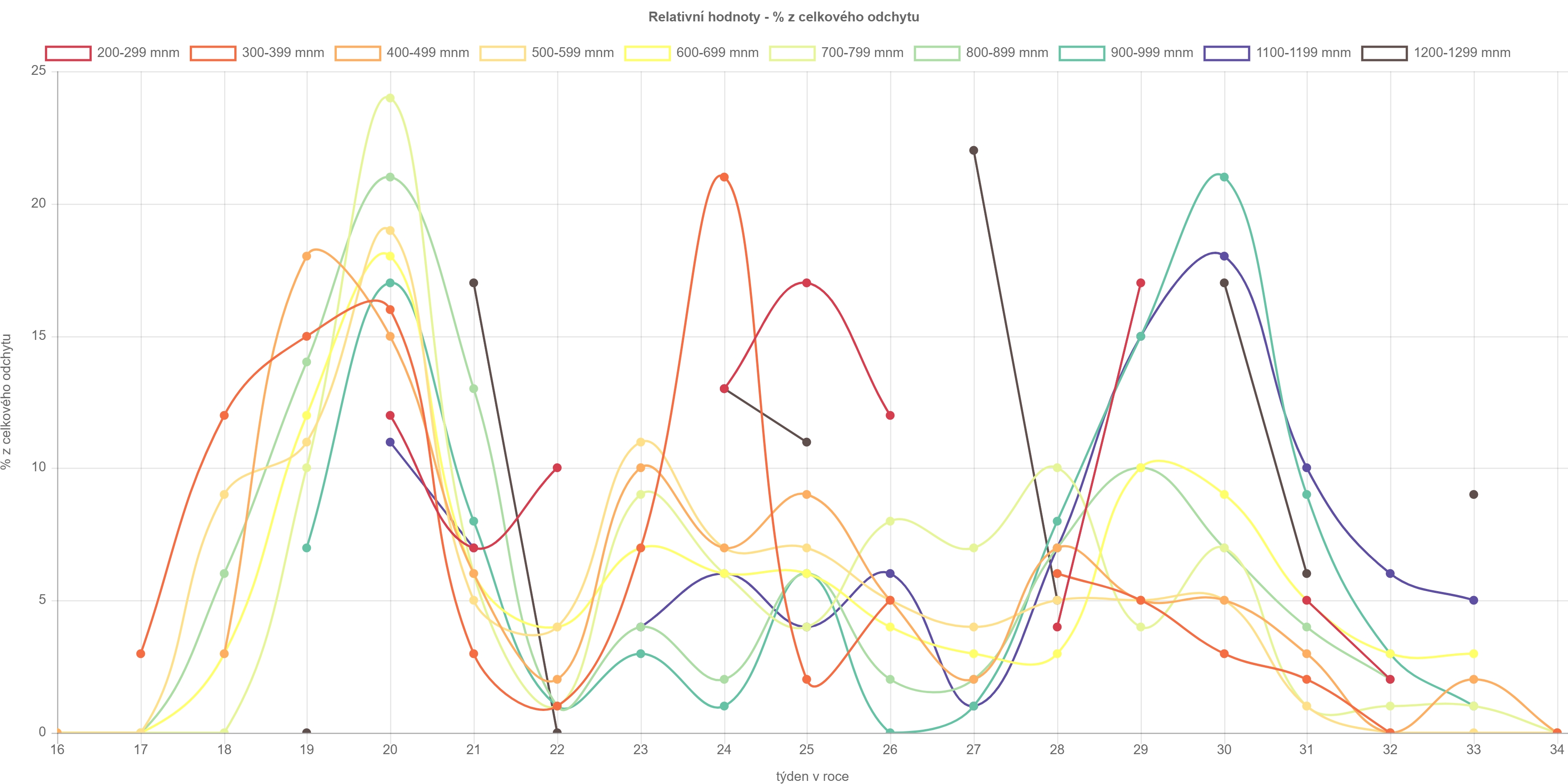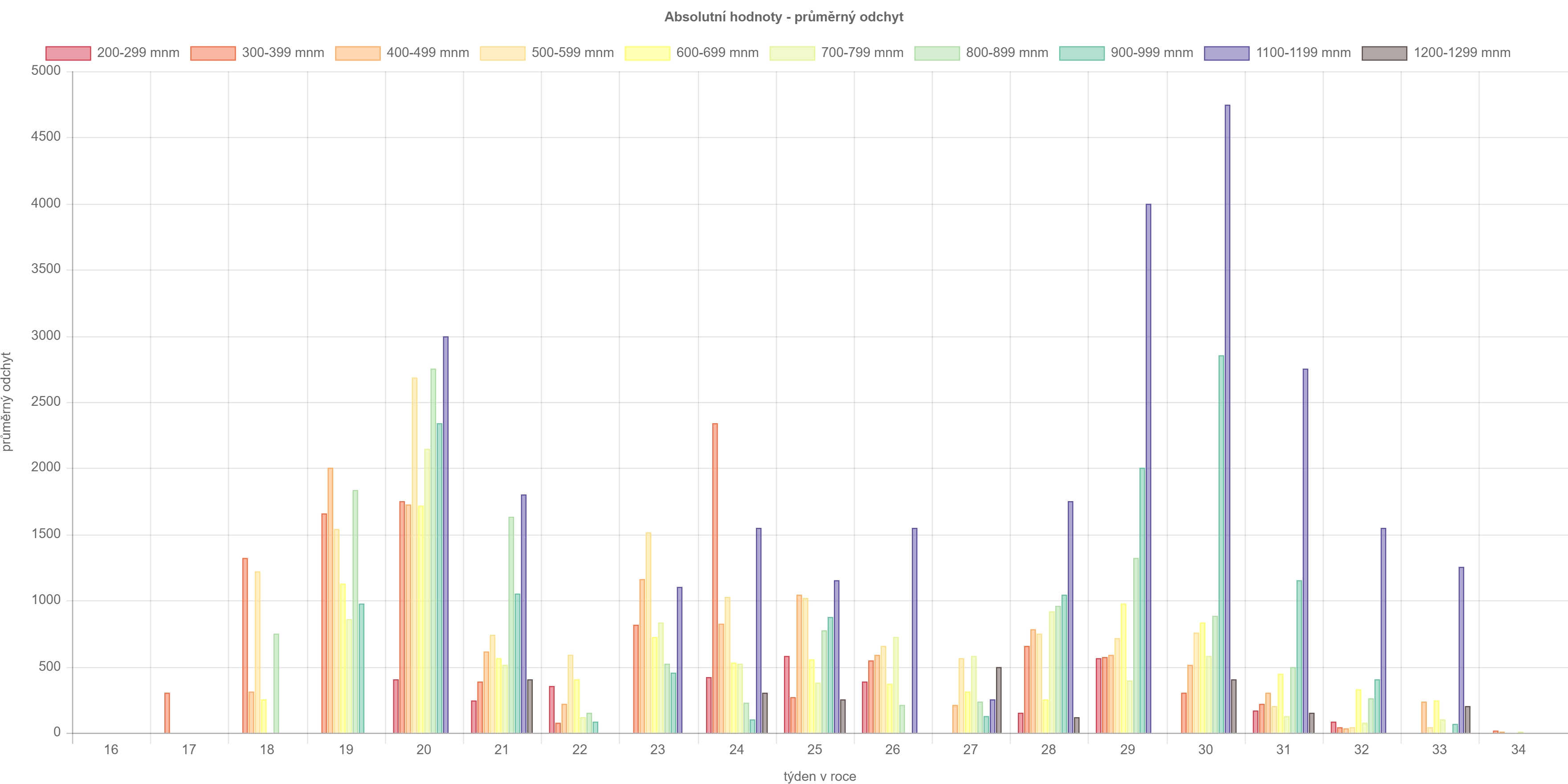 - Výše odchytů je v průměru vyšší než v minulých letech.