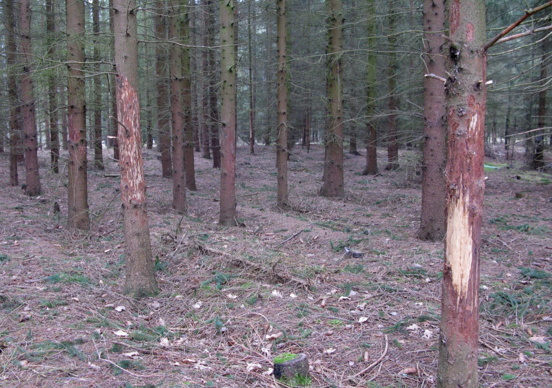 Ohryz kůry smrku spárkatou zvěří. Foto: Jan Liška
