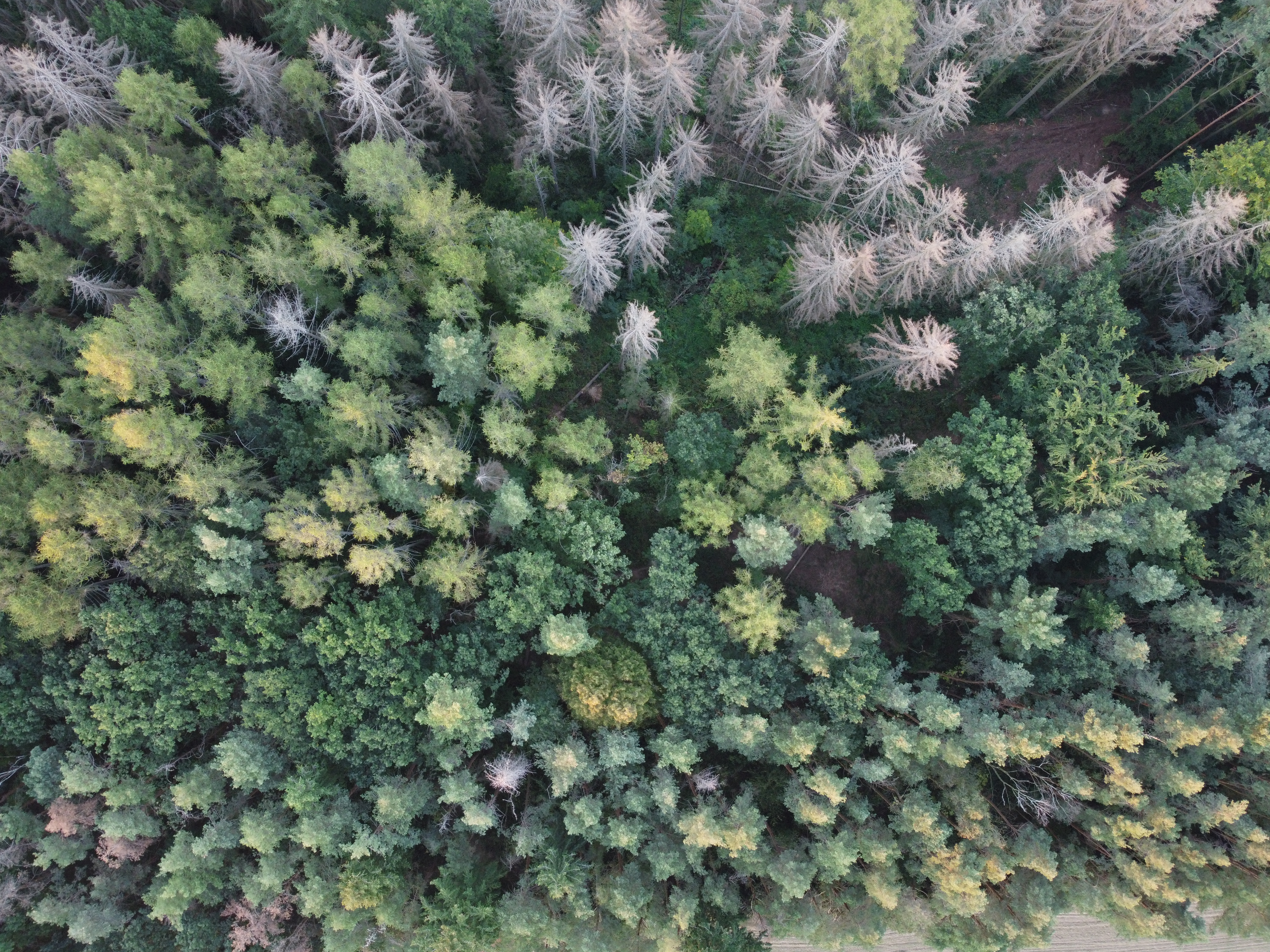 Dalším problémem stojících suchých porostů je obtížná obnova lesa včetně zvyšování biodiverzity výsadbou vhodné směsi stanovištně vhodných dřevin. Přirozená obnova velkoplošně uschlých smrkových monokultur je většinou nereálná. Spíše výjimečně zde zůstanou zachovány skupinky přirozeného zmlazení smrku a obnova ostatních dřevin je možná pouze na vhodných stanovištích při zachování živých matečných stromů v doletové vzdálenosti semen (např. bříza, osika). Zlepšení biodiverzity je proto možné dosáhnout výhradně odtěžením suchých stromů, jejich adekvátním využitím a umělou obnovou vhodnou druhovou skladbou.