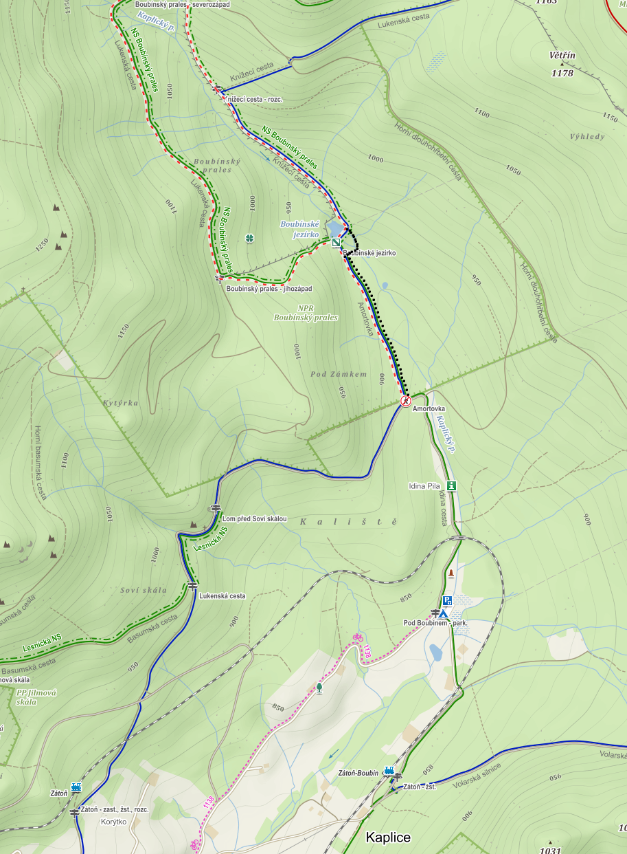 V souvislosti s náhradní trasou požádají Lesy ČR Městský úřad Vimperk o změnu opatření obecné povahy zakazující vstup do jádra Boubína. Zpřístupní se tak zatím uzavřený úsek od Amortovky směrem k jezírku, kde už nebezpečí nehrozí a kde, protože nejde o jádro pralesa, povolila Správa národního parku Šumava zpracovat sedm souší.