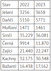 Stav vybraných druhů zvěře v Jihočeském kraji