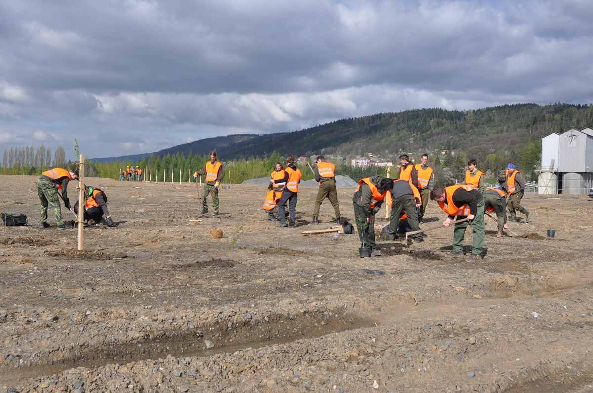 Studenti ukázali, že se práce nebojí a 257 sazenic bylo zasazeno během pár hodin, a to včetně opěrných kůlů a oplocenky chránící stromky a keře proti zvěři.