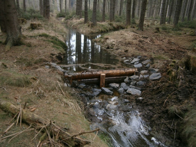 Sedmnáct dřevěných prahů snižuje spád a vzdouvá vodu, která tak zůstává v porostech u Českých Křižánek na Žďársku v Kraji Vysočina. Vodohospodáři z Lesů ČR právě dokončili projekt za 300 tisíc korun bez DPH.