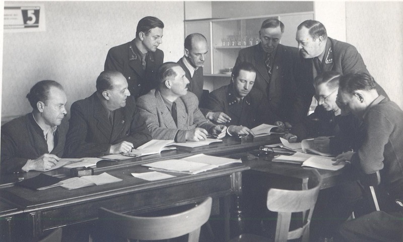 Na snímku: 1935 až 1936. V kanceláři lesního závodu - Ing. Vojtěch Tesař vpravo nahoře
