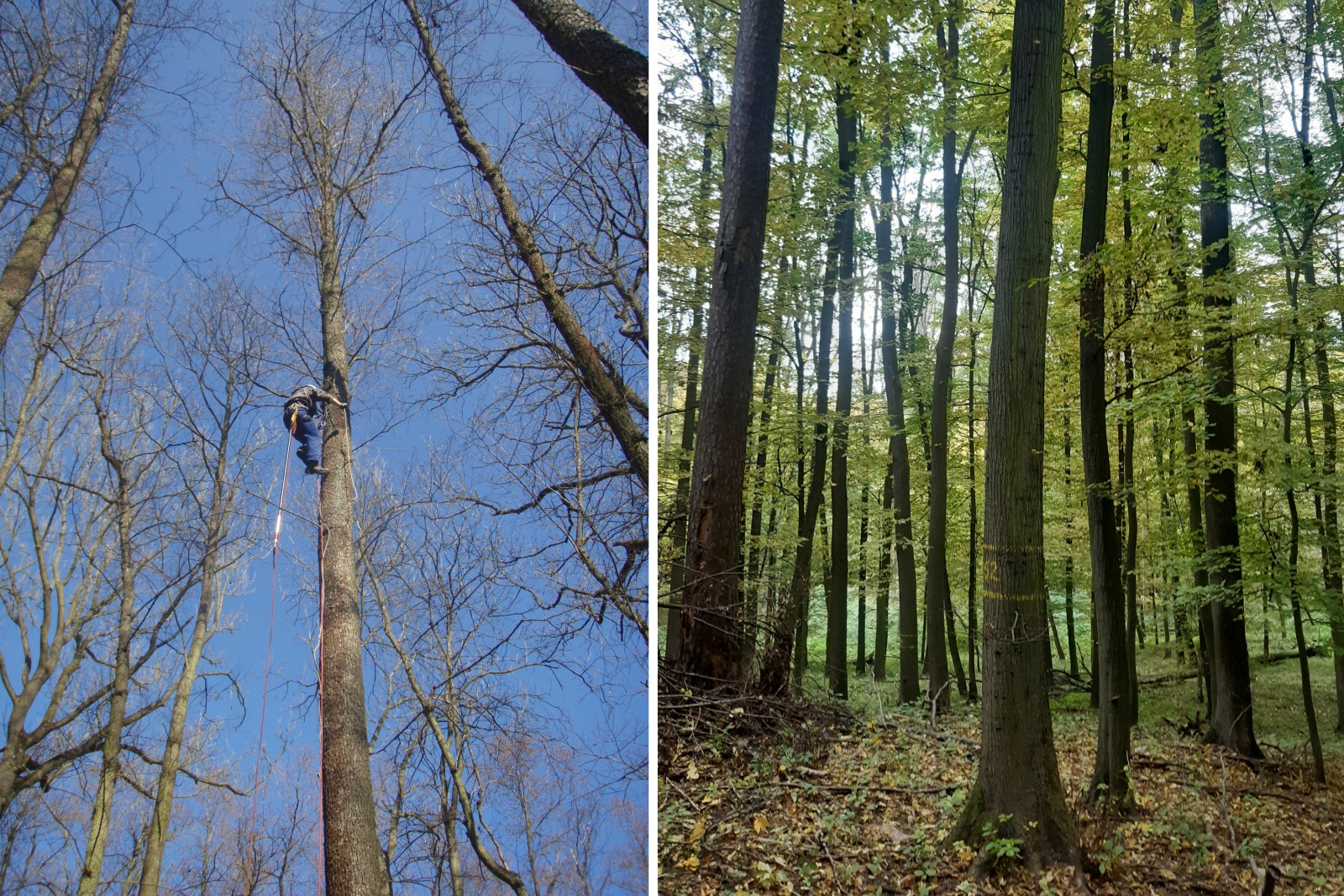 Vlevo: olše lepkavá, Litovel, sběr roubů z uznaného jedince; vpravo: lípa srdčitá, Buchlovice, rovný kmen, vysoko nasazená malá koruna, uznaný jedinec. Foto: V. Buriánek