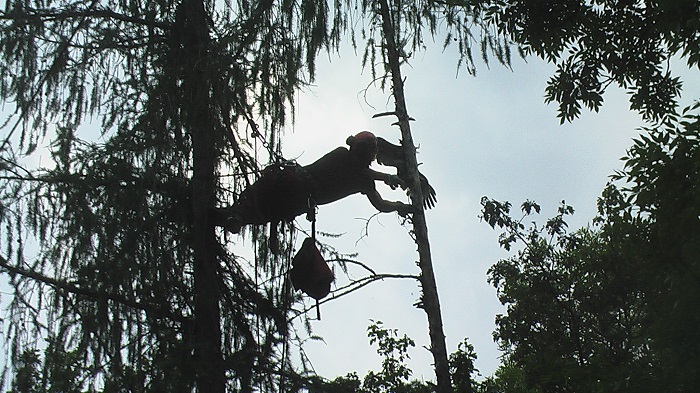 Od ing. Pavla Mouchy jsme dostali tip na Jiřího Krupičku z Račic, mladého stromolezce, který se živí ošetřováním vzrostlých stromů a v jejich korunách se cítí stejně dobře, jako na zemi. Na telefonát reagoval okamžitě a do dvaceti minut byl na místě i s celou rodinou. A musím říci, že po provedeném výkonu na něj mohli být právem hrdí.